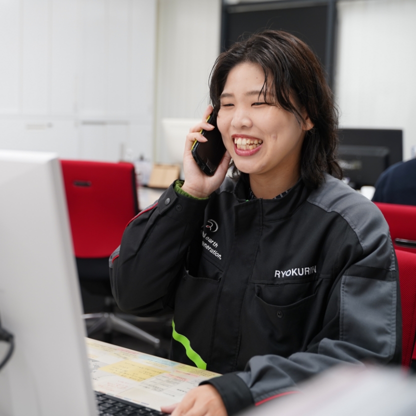 - 総務の仕事は目立つ仕事ではありませんが、社内の業務が円滑に回り、現場を安定して機能させるには、日々の業務を正確に積み重ねていくことだと感じています。書類の処理やデータ管理など一つ一つ丁寧に行うことで、現場が本来の業務に集中できる環境づくりに貢献できていることにやりがいを感じています。