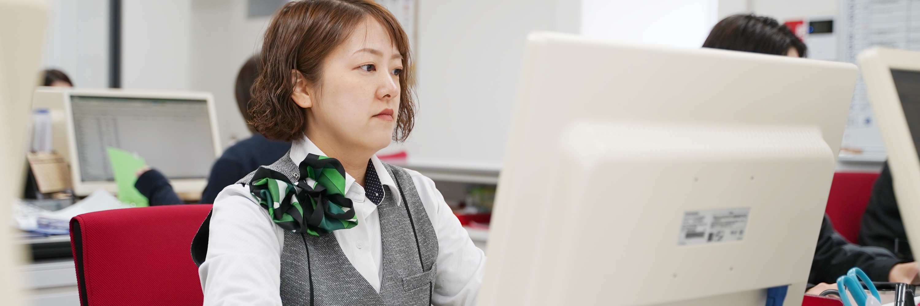 - 総務の仕事は目立つ仕事ではありませんが、社内の業務が円滑に回り、現場を安定して機能させるには、日々の業務を正確に積み重ねていくことだと感じています。書類の処理やデータ管理など一つ一つ丁寧に行うことで、現場が本来の業務に集中できる環境づくりに貢献できていることにやりがいを感じています。